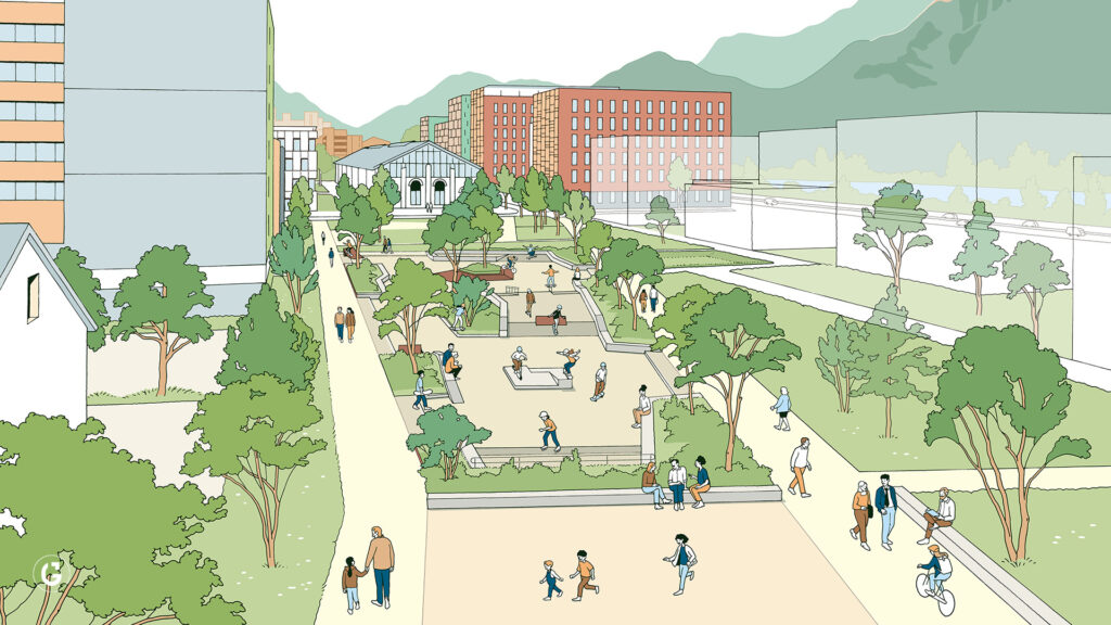De nouveaux espaces publics : agrandissement du square des Fusillés, création de jardins, d’une esplanade et de nouvelles rues plantées.