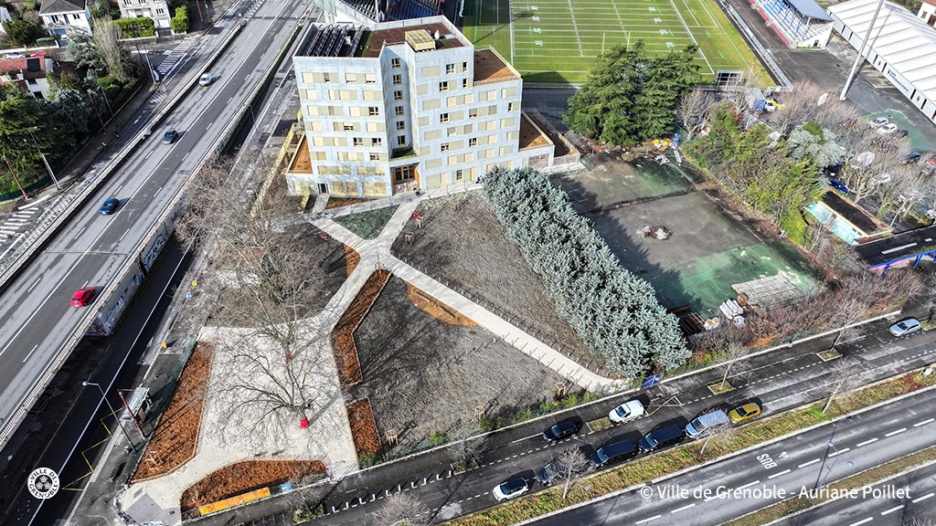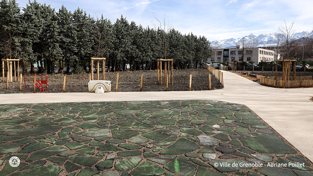 La Ville de Grenoble a souhaité réaliser un aménagement transitoire de qualité permettant de désimperméabiliser les sols et végétaliser.