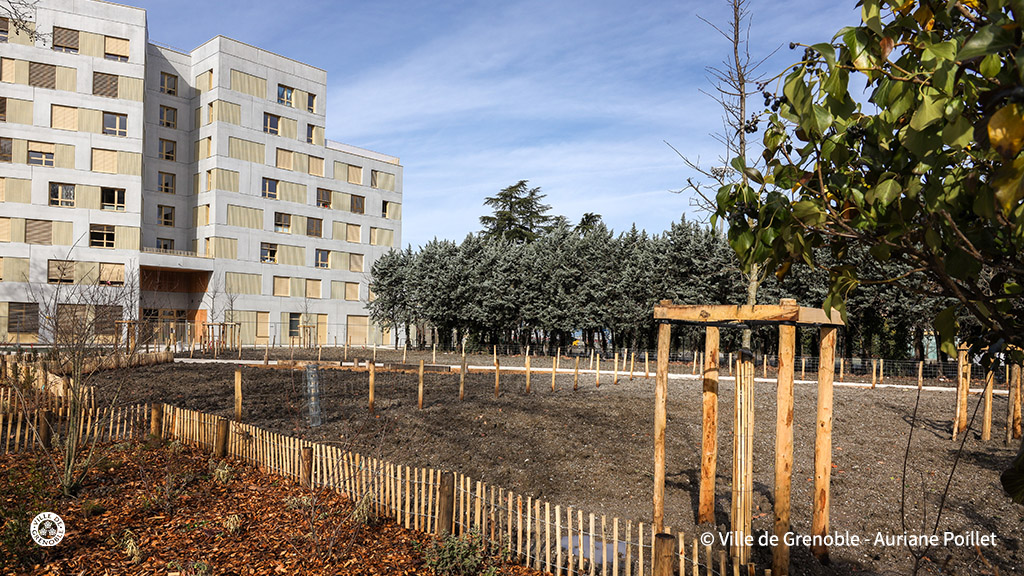 Ce nouveau square a été réalisé sur les anciens cours de tennis Lesdiguières désaffectés en accompagnement de la nouvelle résidence sociale Adoma.
